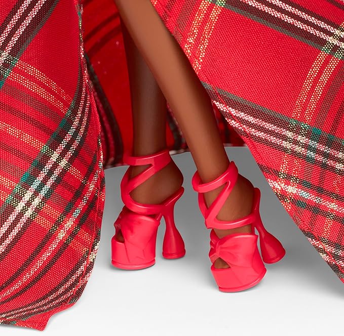 Barbie Signature Doll, 2024 Holiday Fashion Doll with Brown Hair Wearing Plaid Gown, Seasonal Collector Gift in Displayable Packaging