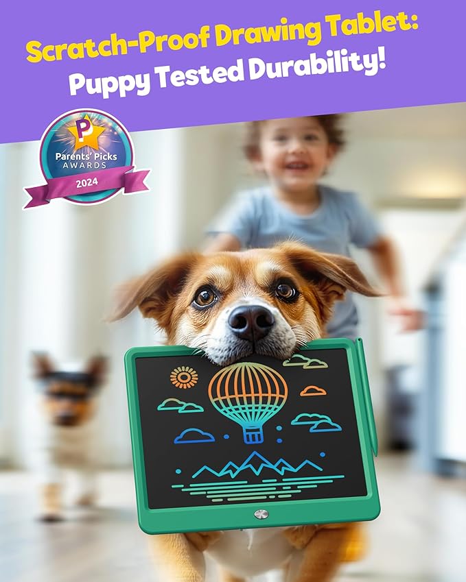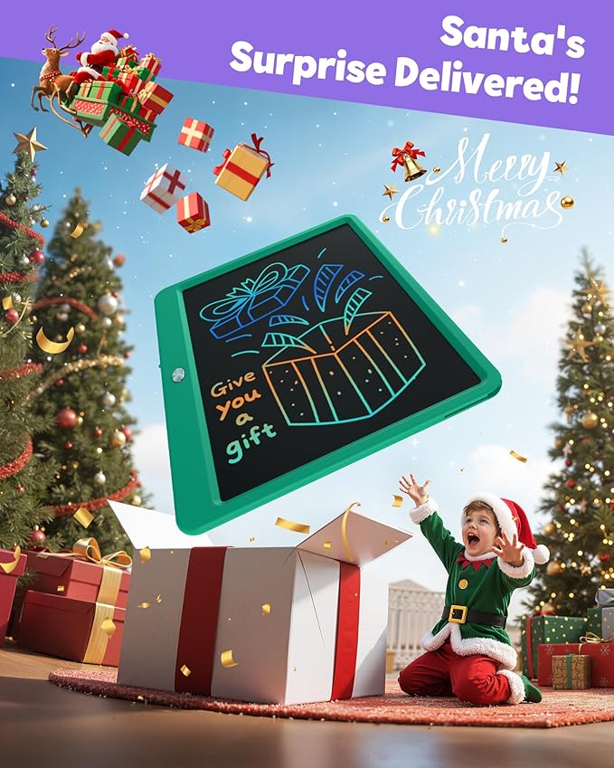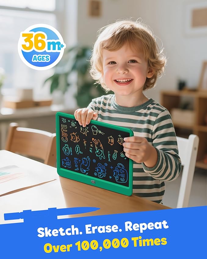 TEKFUN LCD Writing Tablet for Kids Boys Toys, 12 Inch Erasable Doodle Board Colorful Drawing Pad, Board Games Outdoor Travel Toys Gifts for Toddlers Boys Adults (Green)
