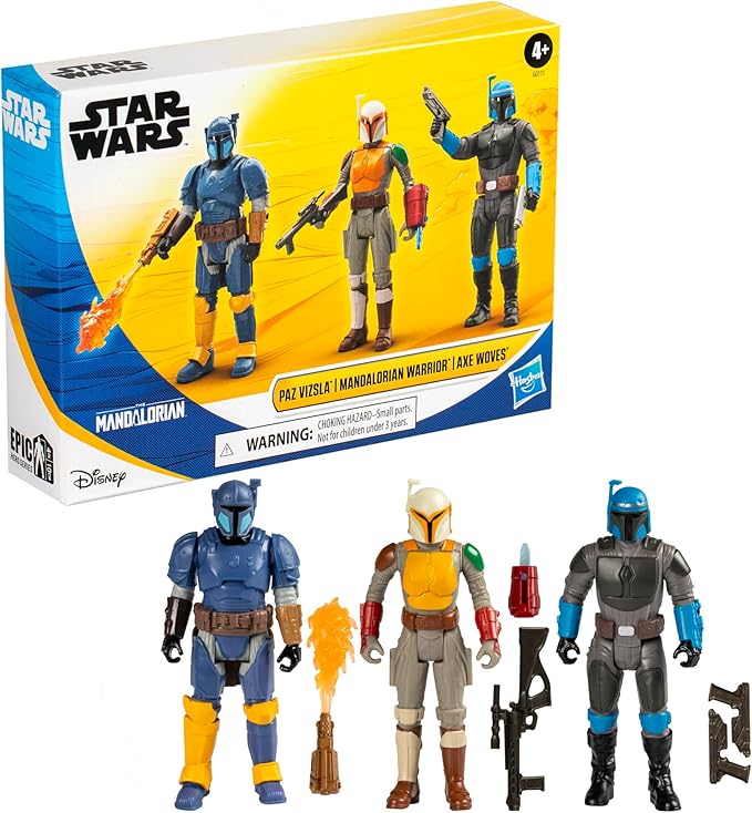 STAR WARS Epic Hero Series Unite The Clans Pack, Paz Vizsla, Mandalorian Warrior, Axe Woves 4-Inch Action Figures, Toys for 4 Year Old Boys & Girls (Amazon Exclusive)