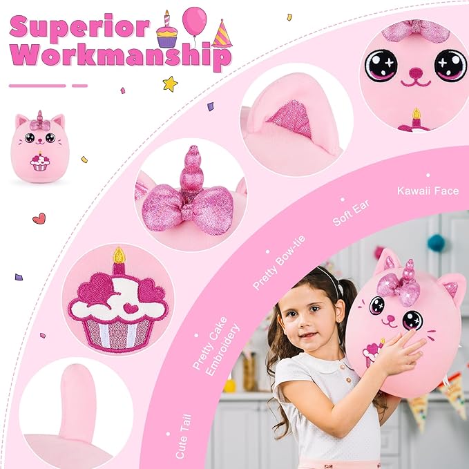 Auspicious beginning Birthday Gift Unicorn Cat Plush Toys-11'' Pink Unicorn Cat Anime Plush-Kawaii Birthday Pink Gifts Plushies Stuffed Animals Cute Plushies, Pillow Plushie Gifts for Kids