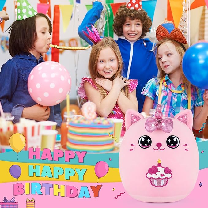 About This 🎂【Cuddly Birthday Unicorn Cat Pillow】The pink unicorn cat birthday plush pillow wears a pretty pink bow tie and... Read more