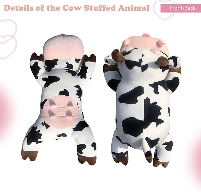 Cow Plush Pillow - 23.6 Inch Cow Stuffed Animal - Birthday Christmas Valentine’s Day Gift for Kids Adults Boys Girls