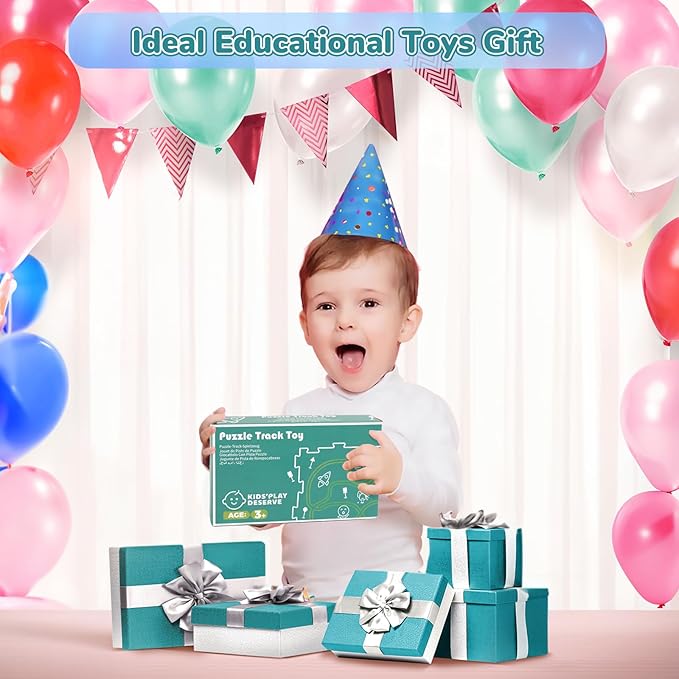 Puzzle Racer Kids Car Track Set with 2 Dino Cars, Kids Toys for 3-5 Year Old Boys, Montessori Toys for 3+ Year Old