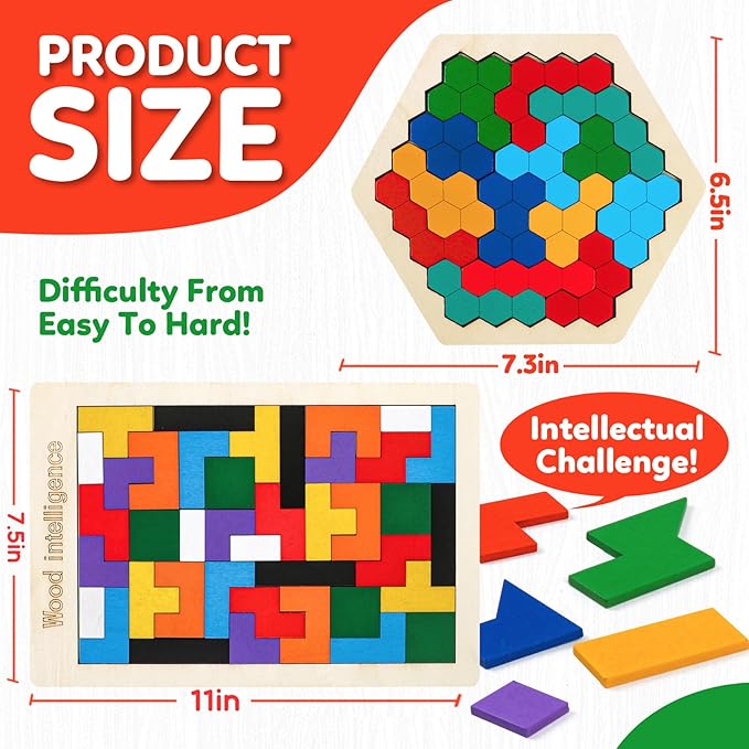 Wooden Puzzles Blocks Brain Teasers Logic Games for Classroom & Party Times,Jigsaw Puzzle Intelligence STEM Montessori Educatioanl IQ Toys Games for Kids Boys Girls Ages 3+ (2 Pack)