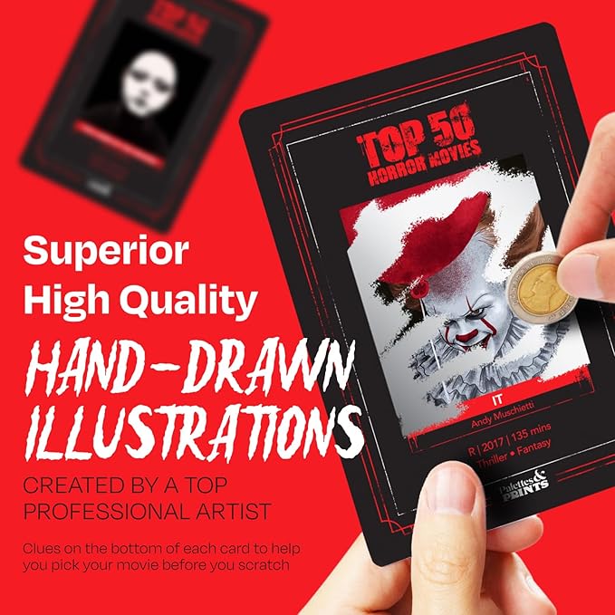 Premium Top 50 Horror Movies Scratch Off Cards - Horror Movie Gifts for Movie Night - Horror Lovers Gifts for Men & Women - Scary Movie Gifts - Horror Merch - Complete The Horror Fan Challenge