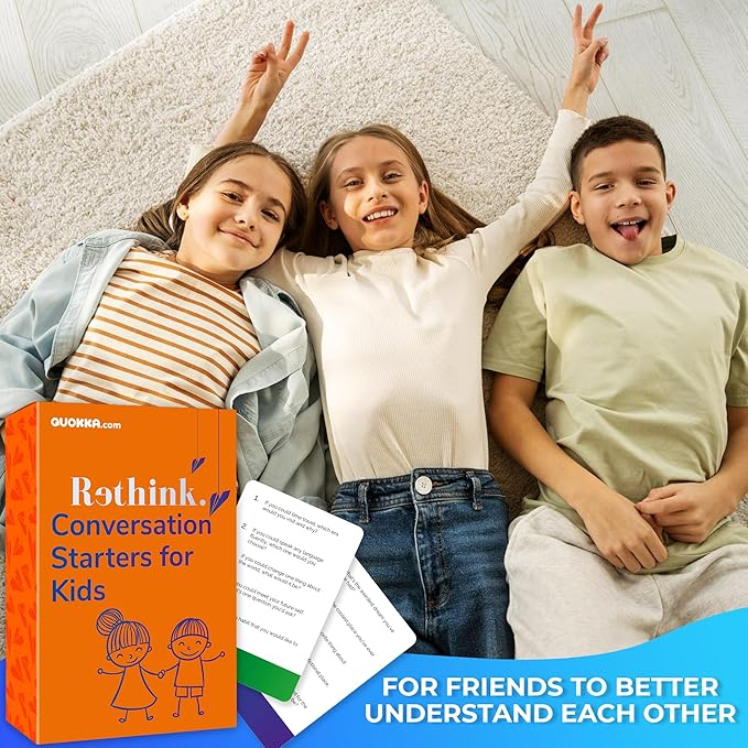 QUOKKA Conversation Cards Game - Kids Edition | 500 Questions | Original Version | Share Thoughts - Fun Talking Board Game for Family Night
