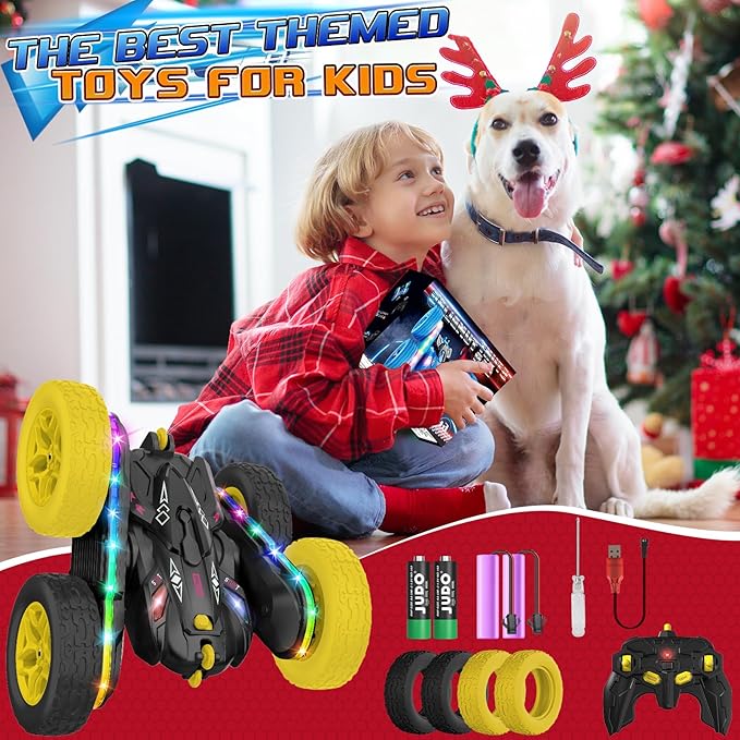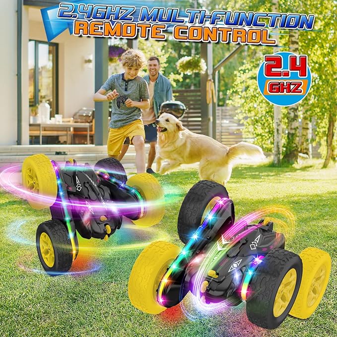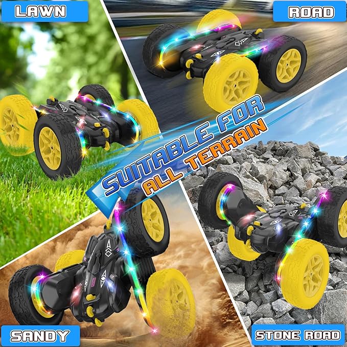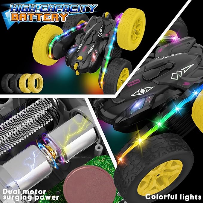 Remote Control Car,RC Cars with Sides Light Strip and Headlights,Double Sided 360 Flips Rotating RC Stunt Car,2.4Ghz All Terrain Toys for Ages 4-8 Kids Toy for Boys Birthday Gift(Black)