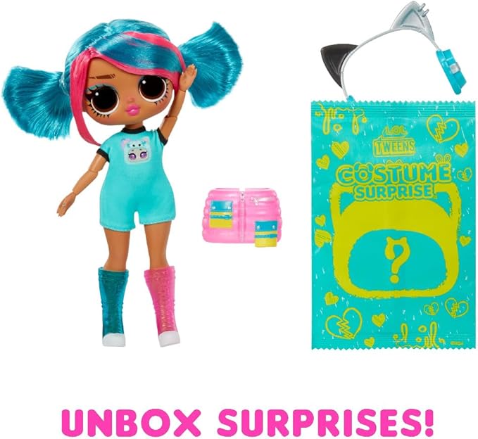 LOL Surprise Tweens Costume Surprise Emma Emo Fashion Doll with Inflatable Teal Kitty Pet Costume and Multiple Surprises Including Fabulous Fashions & Accessories – Great Gift for Kids Ages 4+