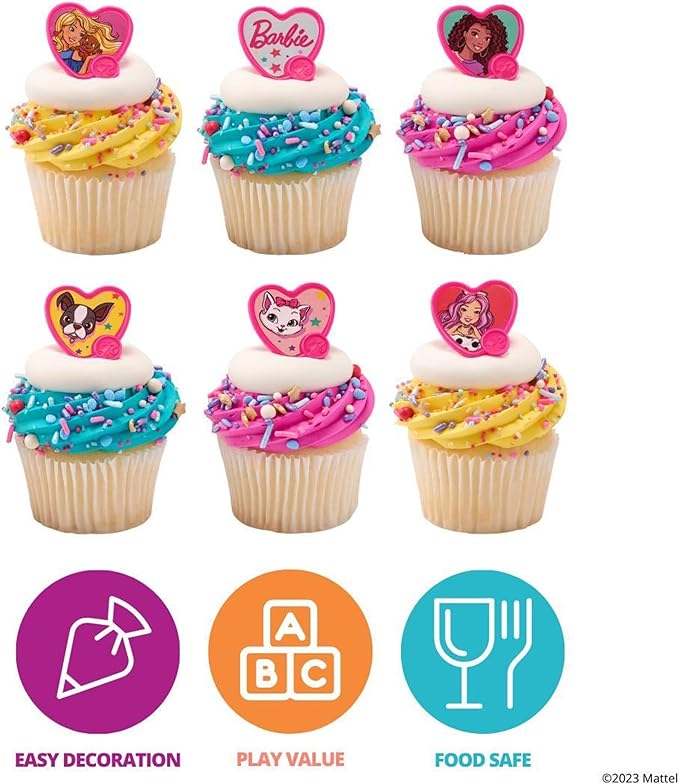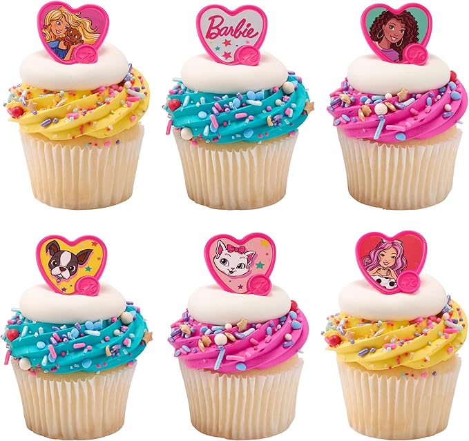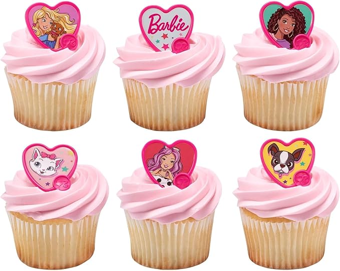 About This Barbie Cupcake Rings - 24 Heart shaped cupcake toppers featuring Barbie and her friends. Be the future with... Read more