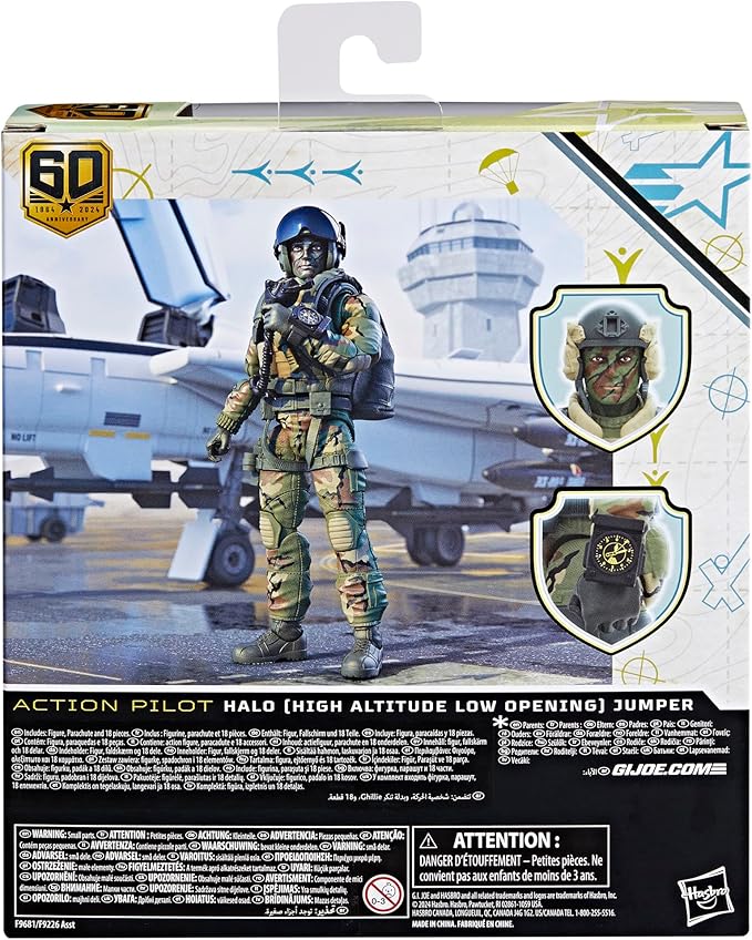 G.I. Joe Classified Series 60th Anniversary Action Pilot - Halo (High Altitude Low Opening) Jumper, 6 Inch Action Figure with Parachute & 18 Accessories