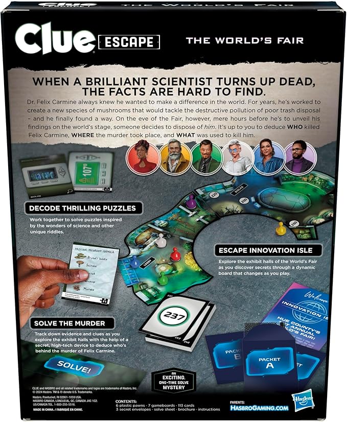Clue Escape: The World’s Fair Board Game | Escape Room 1-Time Solve Mystery Games | Ages 10+ | 1 to 6 Players | 90 - 120 Mins.| Family Games