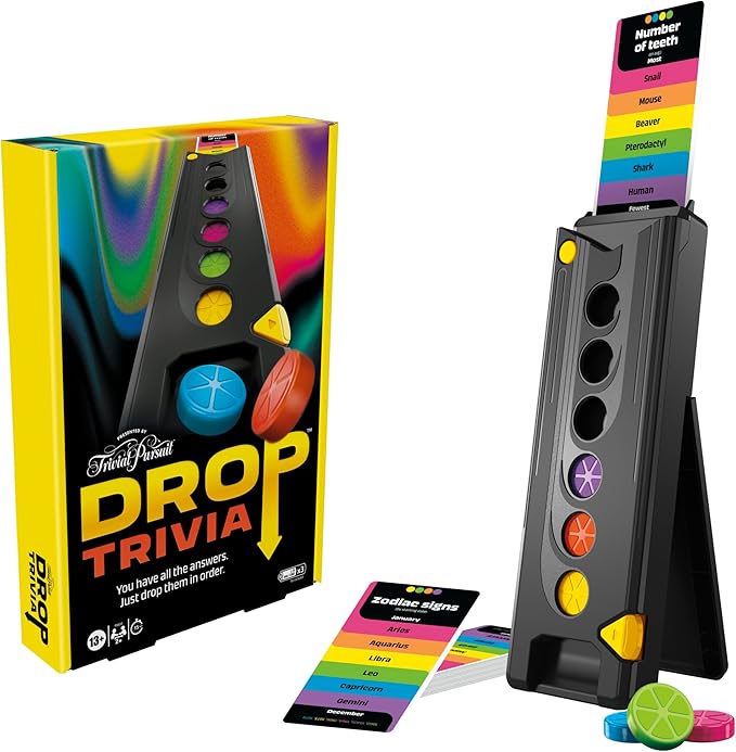 About This FAST PARTY GAME TWIST ON TRIVIAL PURSUIT: Bring the excitement of a game show home with the Drop... Read more
