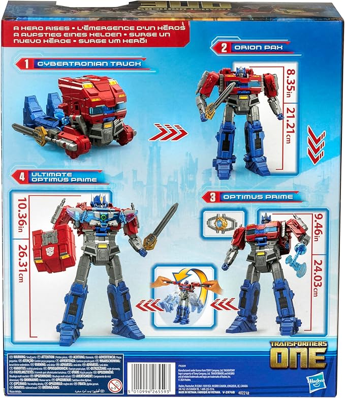 Transformers One Movie Power Flip Optimus Prime (Orion Pax) Converting Action Figure, 4 Modes, 10-inch Interactive Electronic Toy, Lights & Sounds, 6+