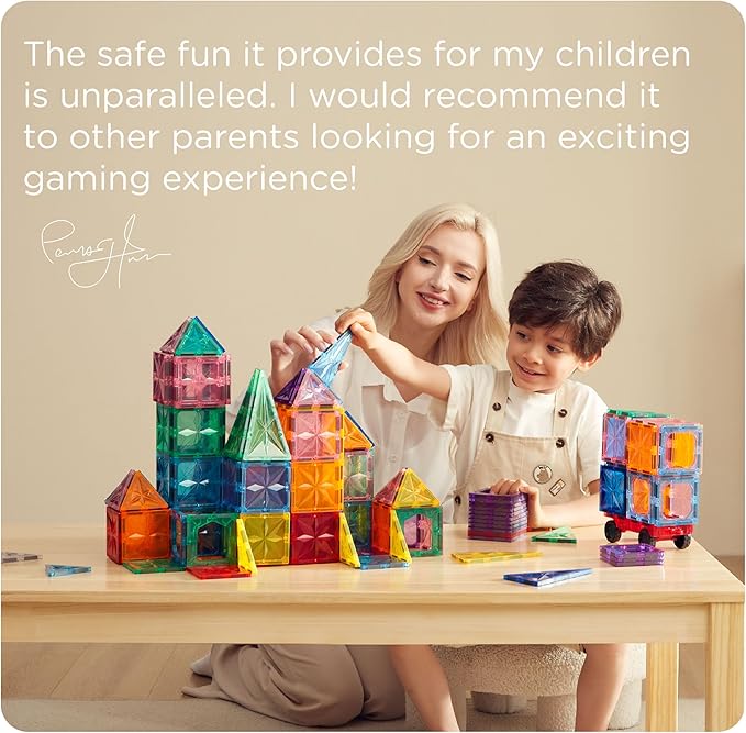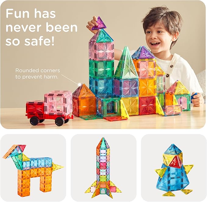 KUB 121 Pcs Magnetic Tiles Creative Toys, 3D Building Magnet Blocks Set, STEM Educational Kids Gifts for Boys Girls Over 3 Years Old, Montessori Preschool Learning