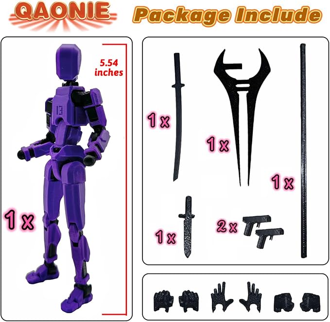 3D Printed 5.54-inch Multi-Jointed Action Figures Dummy13, Full Body Mechanical Movable Toy, Multiple Accessories, Hand Painted Figure, Desk Decoration, Creative Gifts (Purple)