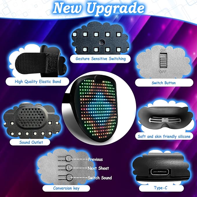 About This [60 Patterns Display and Sound Effects]: COOLGUARDER Led mask has 35 dynamic display modes and 25 static display... Read more