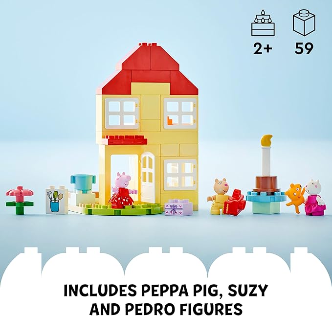 LEGO DUPLO Peppa Pig Birthday House Playset with 3 Animal Figures, Educational Toy for 2 Year Olds, Buildable Dollhouse for Creative Role Play, Peppa Pig Toy for Girls, Boys and Toddlers, 10433
