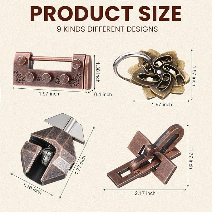 About This 9 Pieces Metal Puzzles: there are 9 pieces of puzzles for adults in different difficulty, which is carefully... Read more