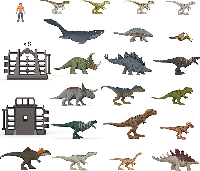 Mattel Jurassic World: Chaos Theory Advent Calendar with 24 Days, 30 Dinosaur-Related Toy Surprises, 20 Mini Dinos, 1 Human, 9 Fence Pieces