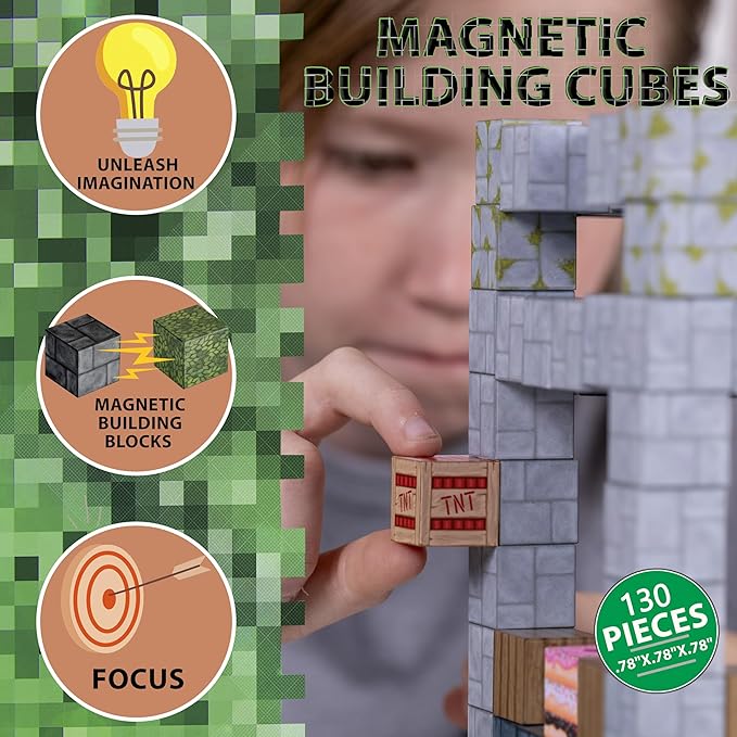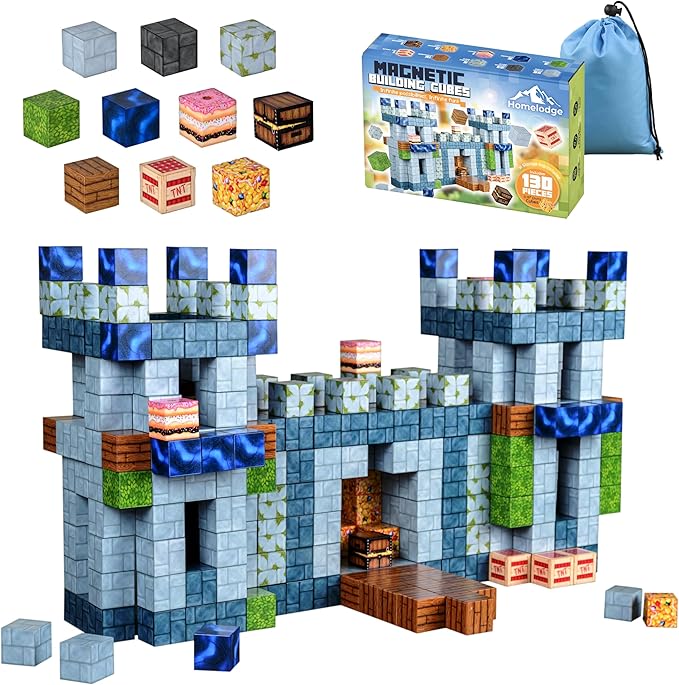 130PCS Magnetic Building Blocks - Magnet Cubes for Kids Ages 6-8-10-12 - Toy Block Magnetics Set Gifts for Boys & Girls - STEM Learning Imagination Sensory Toys - Storage Bag Included