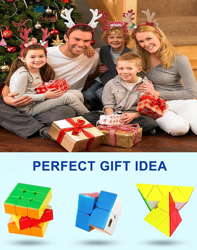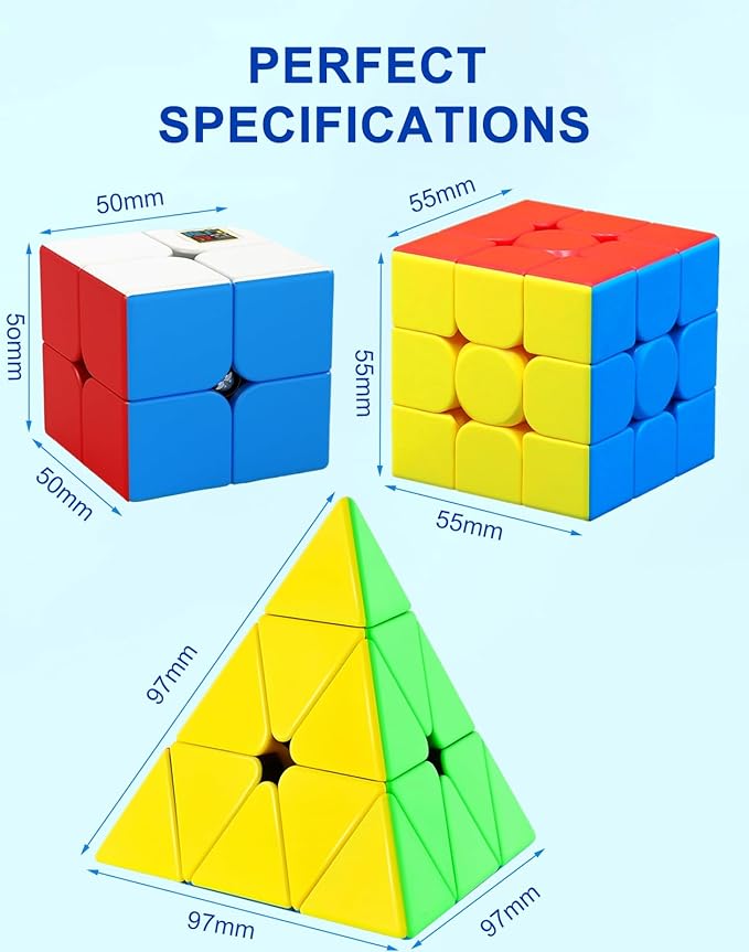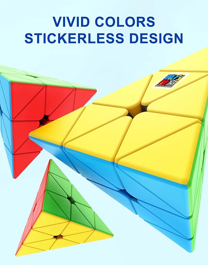 CFMOUR Speed Cube Set - Moyu Meilong 2x2x2 3x3x3 Pyramid Cube Bundle | Stickerless Magic Cubes with Smooth Turning | Brain Teaser Puzzle Toys for Kids & Adults