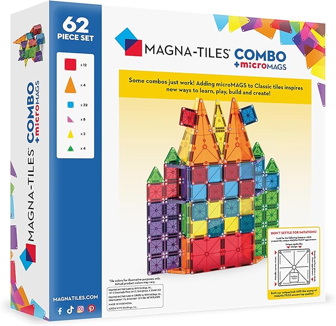 MAGNA-TILES Combo 62-Piece Magnetic Construction Set, The Original Magnetic Building Brand