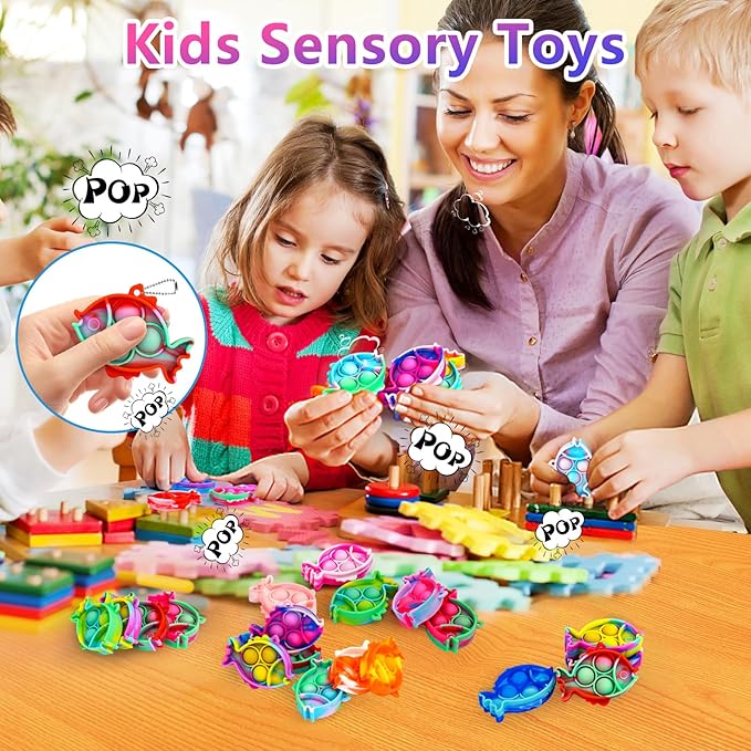 About This Kids Party Favors Goodie Bag Stuffers: Cute fish mini pop keychain fidget toys kids party favors for kids... Read more