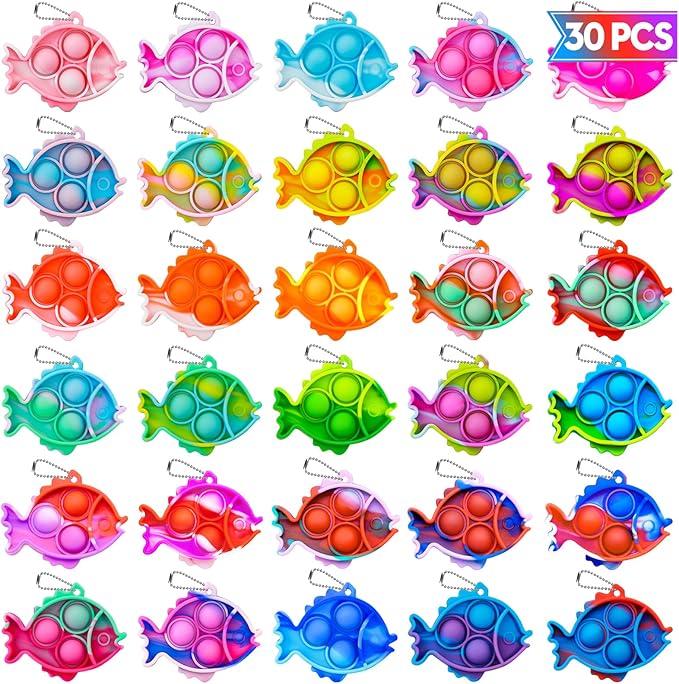 Pop Fidget Toys Bulk Its Party Favors for Kids 30 PCS Cute Fish Mini Pop Keychain It Sensory Fidget Toy Pack Fidgets for Classroom Prizes for Students Kids Carnival Prizes Birthday Goodie Bag Stuffers