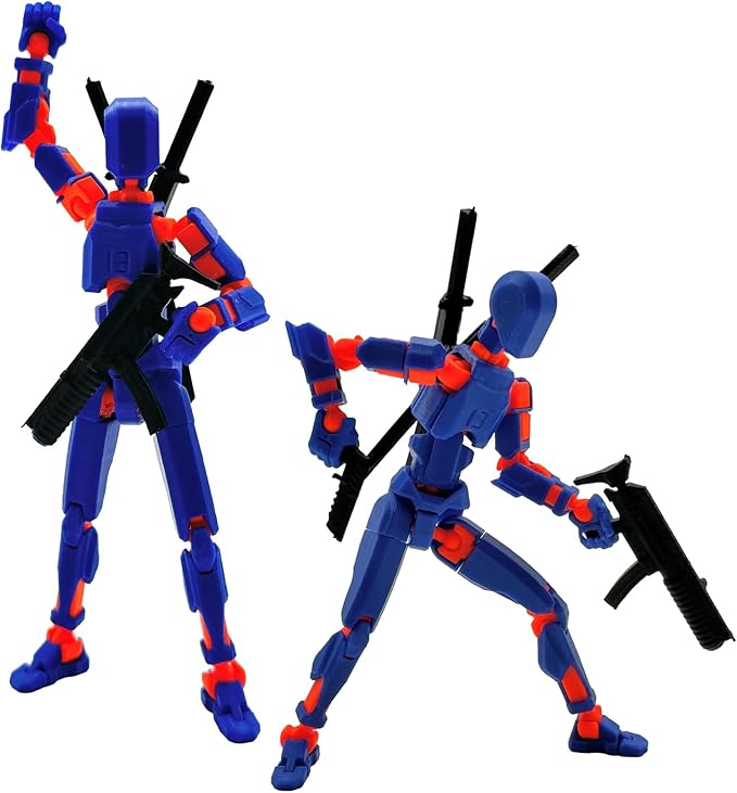 (Assembly Completed) 3D Printed Figure 5.54-inch Dummy13 with Weapon Expansion Set, Full Body Mechanical Movable Toy, Desk Decoration. (Dark Blue)