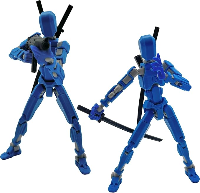 (Assembly Completed) 3D Printed Figure 5.54-inch Dummy13 with Weapon Expansion Set and Bracket, Full Body Mechanical Movable Toy, Desk Decoration. (Blue)