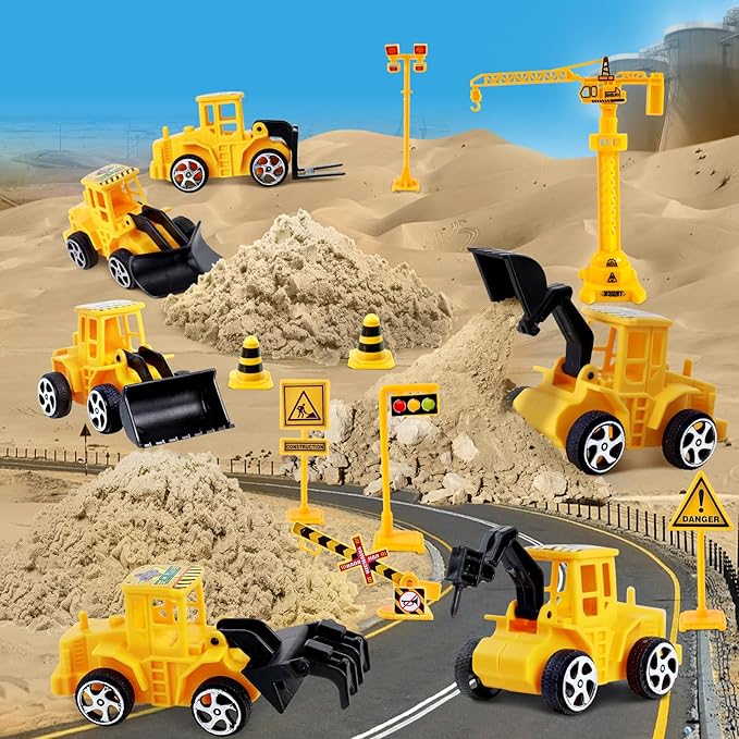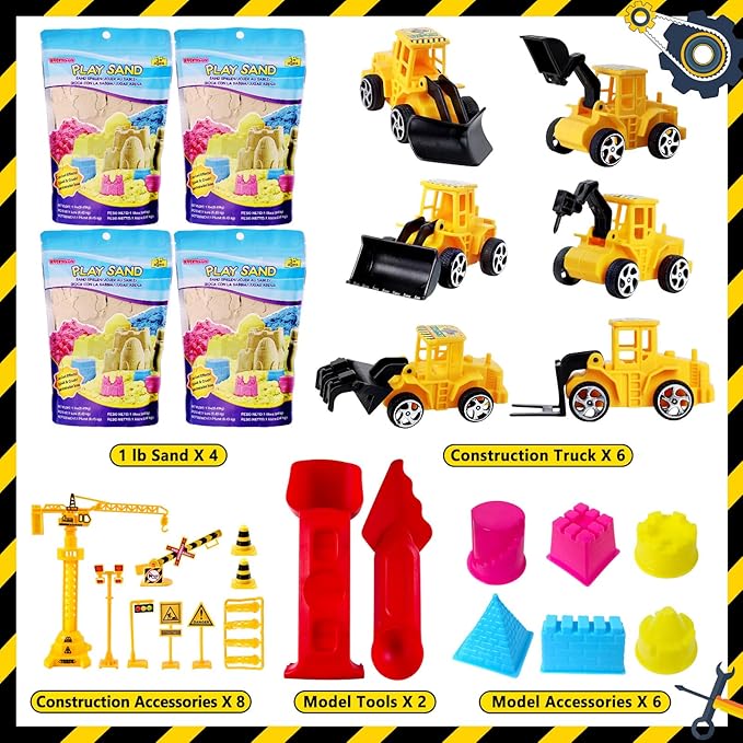 ESSENSON Construction Sensory Bin - Play Sand Kit with Toy Truck and 4lbs Magical Sand, Pretend Play Beach Sensory Toy Sandbox, Kids Gifts for Girls and Boys