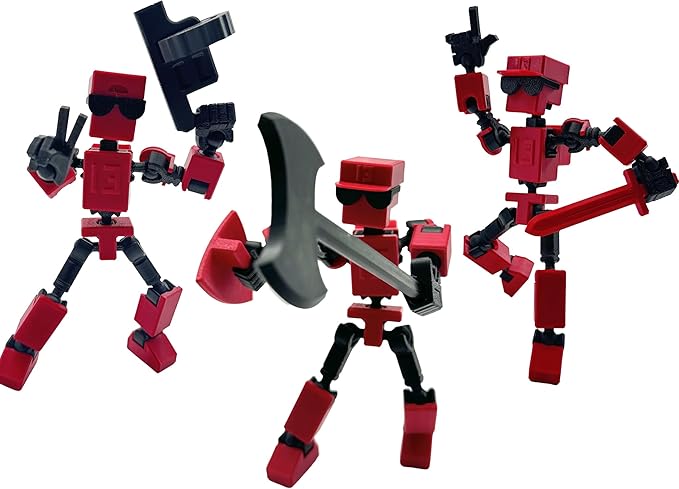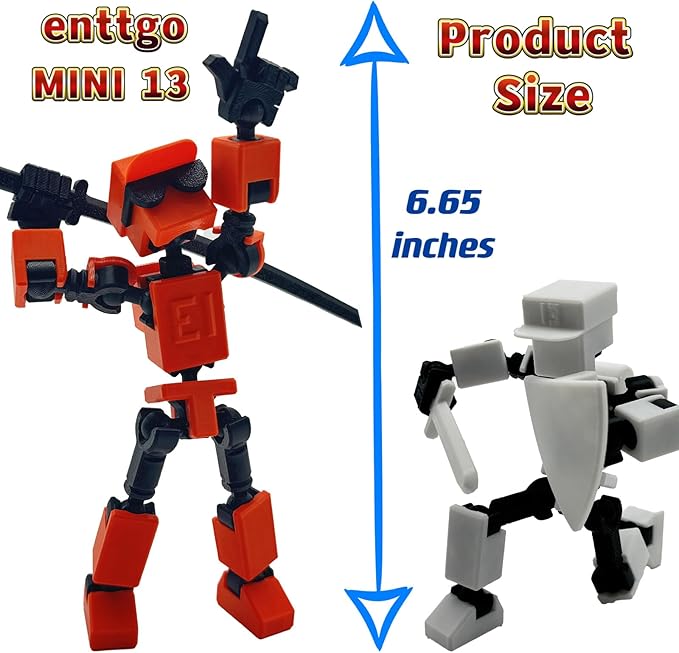 (Assembly Completed) 3D Printed 6.65-inch Action Figure Mini-13, Full Body Mechanical Movable Toy, Multiple Accessories, Desk Decoration, Creative Gifts (Red)