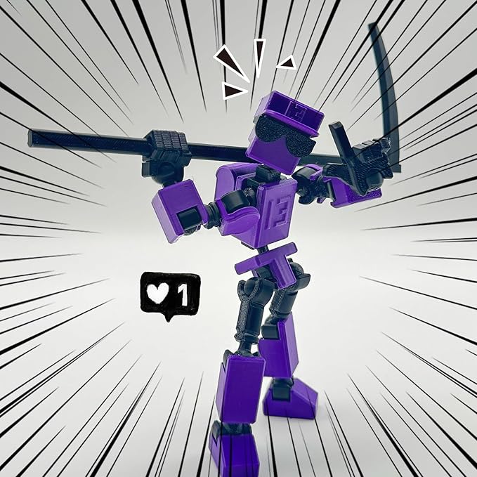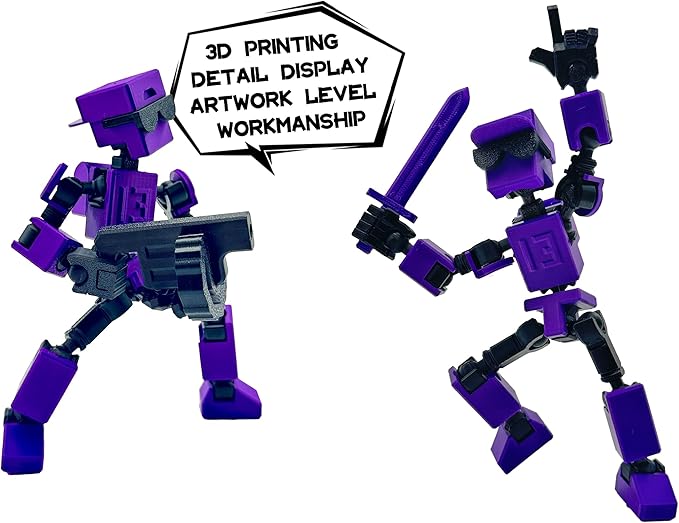 (Assembly Completed) 3D Printed 6.65-inch Action Figure Mini-13, Full Body Mechanical Movable Toy, Multiple Accessories, Desk Decoration, Creative Gifts (Purple)