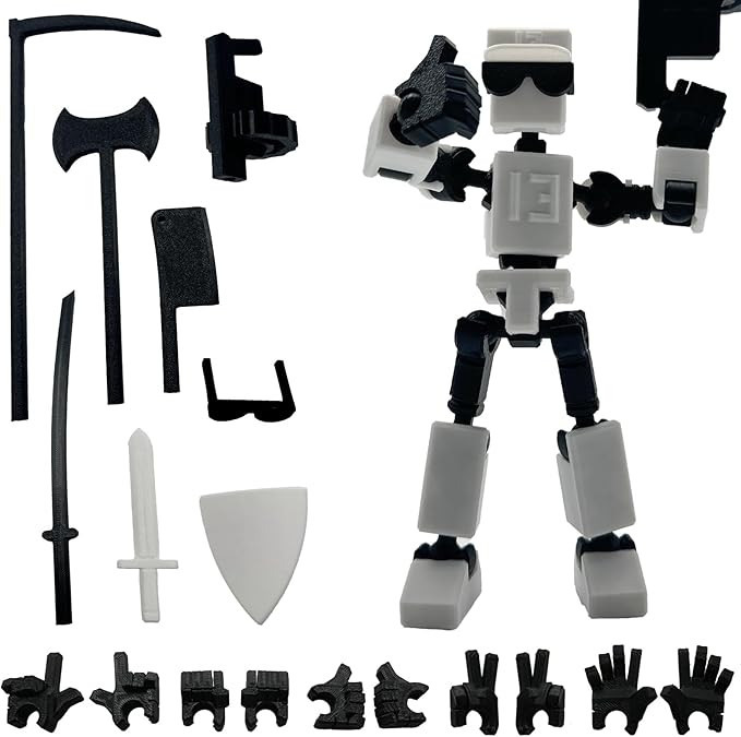 (Assembly Completed) 3D Printed 6.65-inch Action Figure Mini-13, Full Body Mechanical Movable Toy, Multiple Accessories, Desk Decoration, Creative Gifts (White)