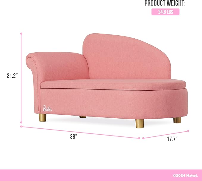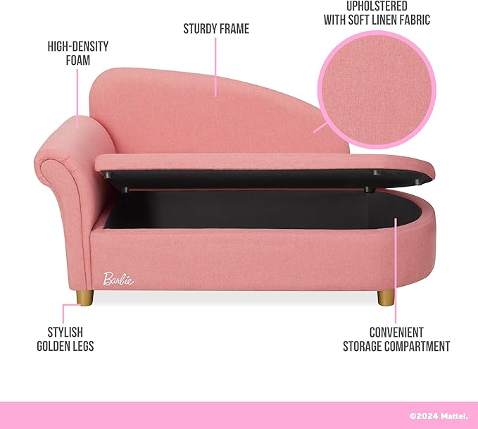 Evolur Barbie Dream in Pink Chaise Lounge, Wrapped in Soft & Durable Linen Upholstery, Ample Storage Below The seat, Comfortable Rolled arm Rest with Stylish Raised Back Rest