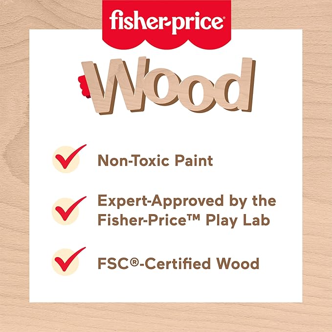 Fisher-Price Wood Toddler Toy Interlocking Blocks Stacking Jigsaw Puzzle with 20 Wooden Pieces for Kids Ages 18+ Months
