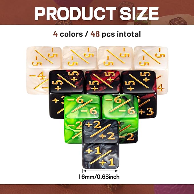 Sumind 48 Pcs Counter Dice -1/+1 Counters Buff Tokens 6 Sided Dice Gifts Compatible with MTG CCG TCG Cards Gaming Accessory (Composite Style)