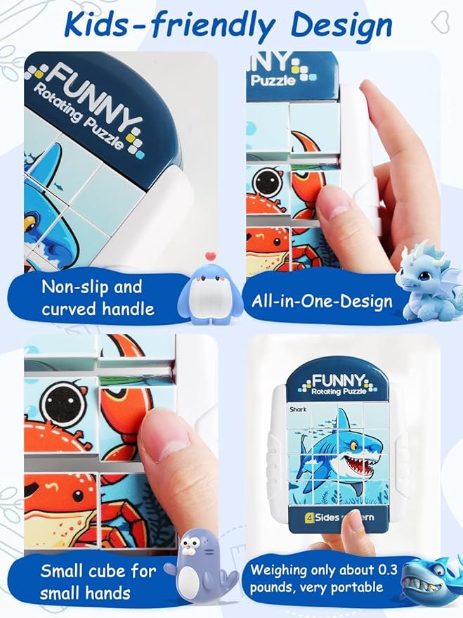 16-Piece Rotating Puzzles for Kids 4-6, Toddlers Puzzles 2-4, Road Trip, Airplane Activities Game, Travel Toys - Brain Teaser, Fine Motor Skills - Birthday Gifts Boys & Girls - Marine Life