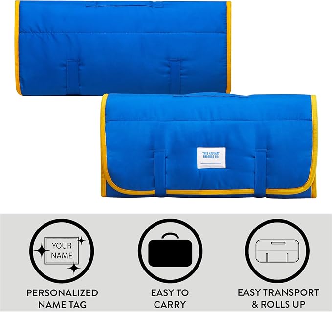 Super Soft Plush Toddler Quilted Nap Mat with Built in Blanket and Pillow