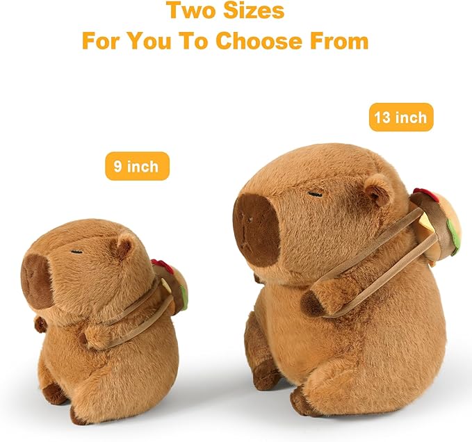 Ditucu Cute Capybara Plush with Hamburger Backpack Soft Capibara Stuffed Animal Plushies Toys Hugging Gifts for Kids Brown 13 inch