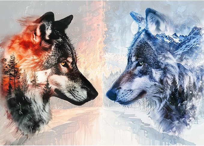About This Bgraamiens Puzzle –Bgraamiens Puzzle- Ice VS Fire -1000 Pieces Fantasy Double Exposure Wolf Puzzle, Nature Animals Puzzle Impossible... Read more