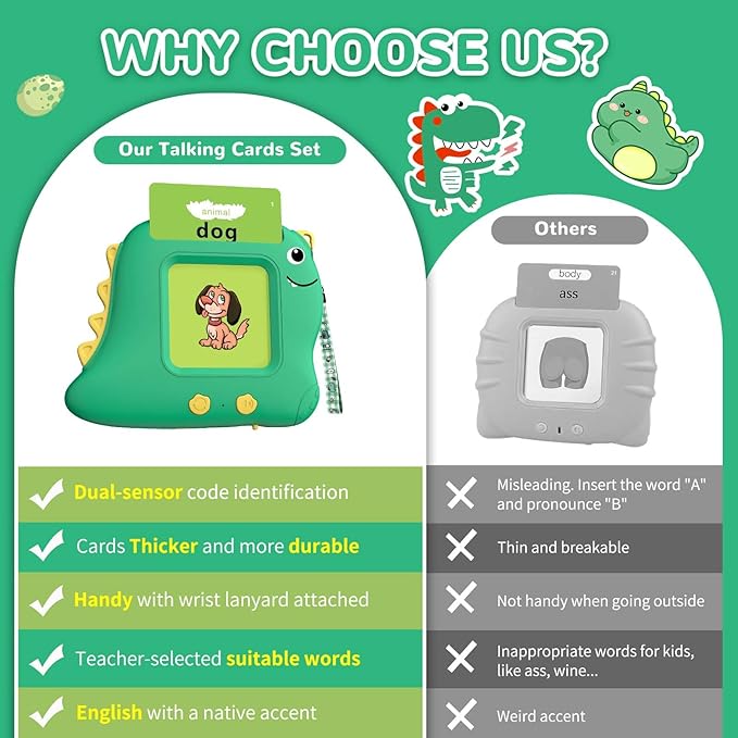 About This Toddler Montessori Learning Toys: Alotwan dinosaur talking flash cards include 255 double-sided cards with 510 early educational sight... Read more