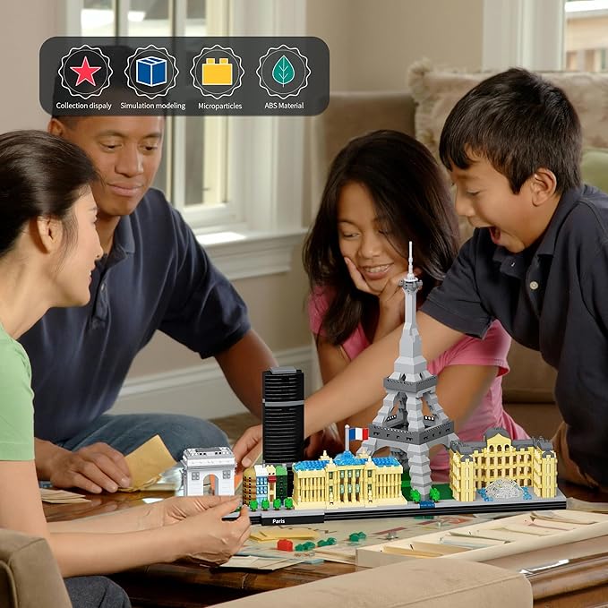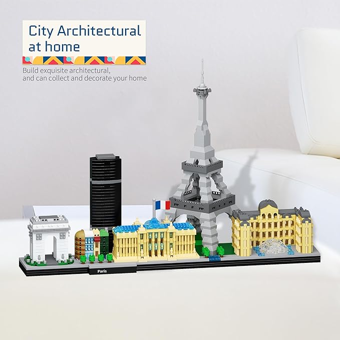 Architecture Paris Micro Building Blocks Set with Eiffel Tower and The Louvre Skyline Series Adult and Assembly World Famous Landmarks Construction Present Kit 3680 pcs