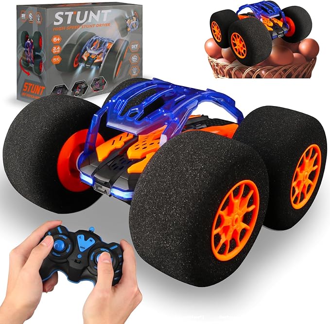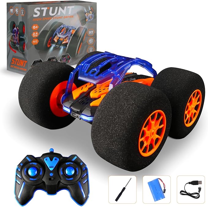 Indoor RC Car Stunt Remote Control Car Toys with Soft Wheels RC Cars for Kids Indoor Outdoor with LED headlight & Crazy Stunts 360° Flips Double Sided Vehicle 2.4GHz Remote Control for Boys Girls Gift