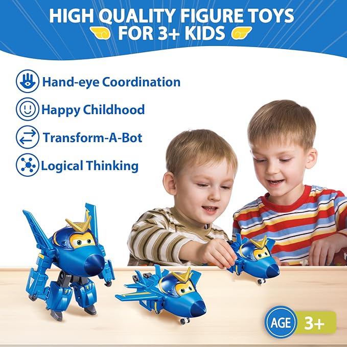 Super Wings Transformable Toys, 5 in Jerome Airplane Transforming Figures Toys, 2 in 1 Mode Rescue Bots Action Figure Toys for 3-5 Year Old Boys Girls, Fun Plane Toys for Toddlers Kids Age 3 4 5 6 7