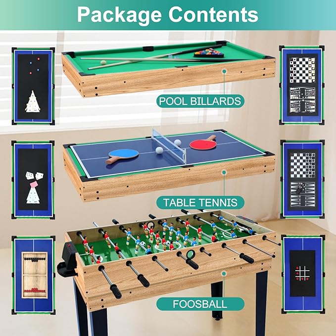 12-in-1 Game Table - 48" Combo Game Table, Ping Pong Table, Foosball Table, Air Hockey Table, Pool Table - Sports Arcade Games with Accessories - Ideal for Game Rooms and Family Game Nights!