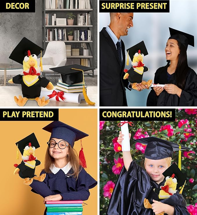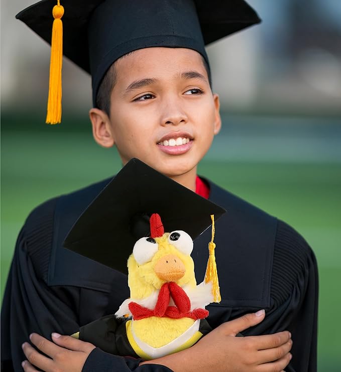 DolliBu Yellow Rooster Graduation Plush Toy - Super Soft Rooster Graduation Stuffed Animal Dress Up with Gown and Cap with Tassel Outfit - Reward Celebration Grad Gift - 10.5 Inch