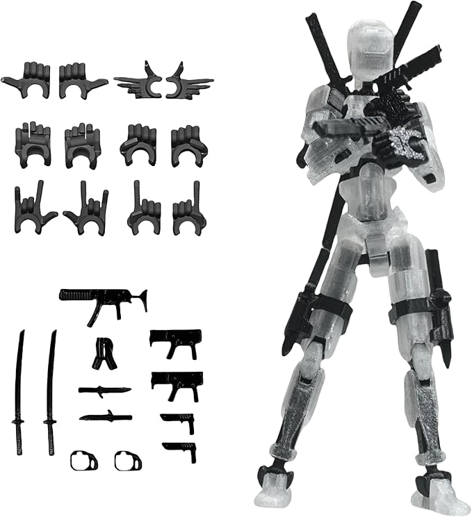 Pre-Assemly 3D Printed 5.54'' Stick 13 Action Figure, Multi-Jointed Tian13, Articulated T13 Desktop Decoration,12 in 1 Accessories, Best Birthday Festival Gift (Transparent)