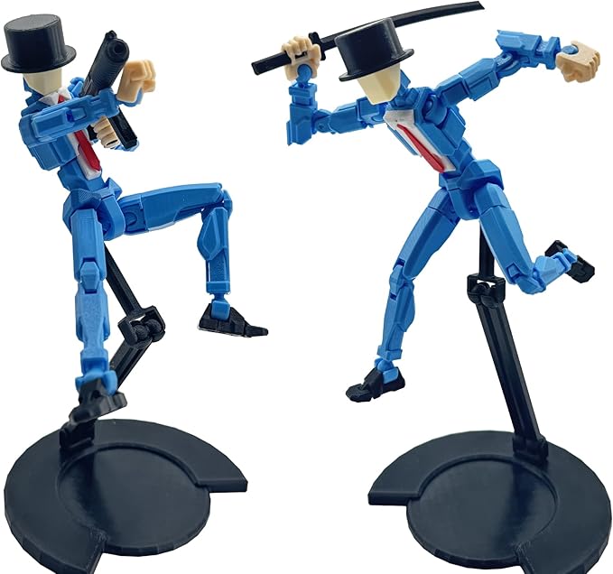 3D Printed 8.13-inch Action Figure Dummy-Mici20, Full Body Mechanical Movable Toy, Multiple Accessories, Desk Decoration (3 HandsType, Bracket, Weapons, Armour) (Blue)
