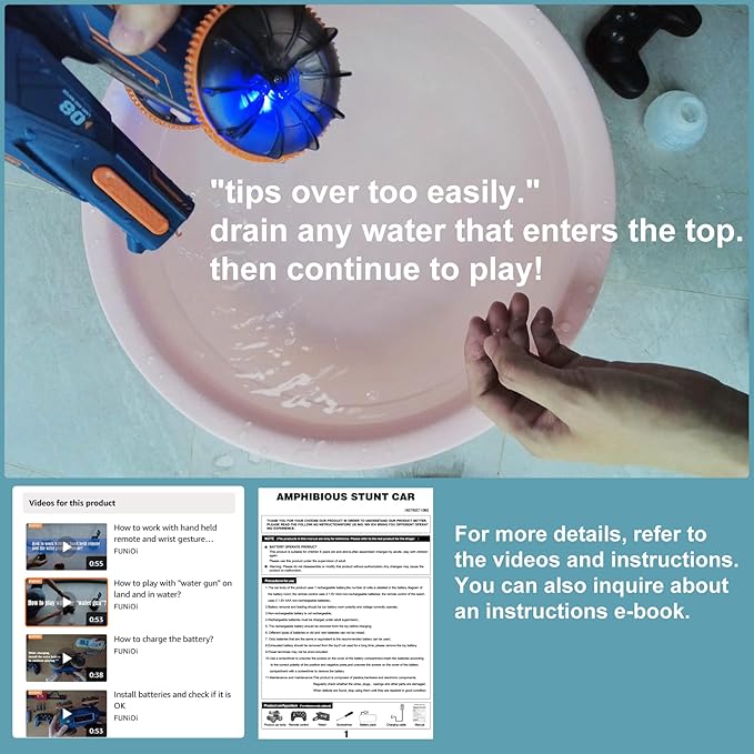 About This 3-in-1 RC Stunt Car: A unique 2024 design, it functions as an RC car, RC boat, and water... Read more